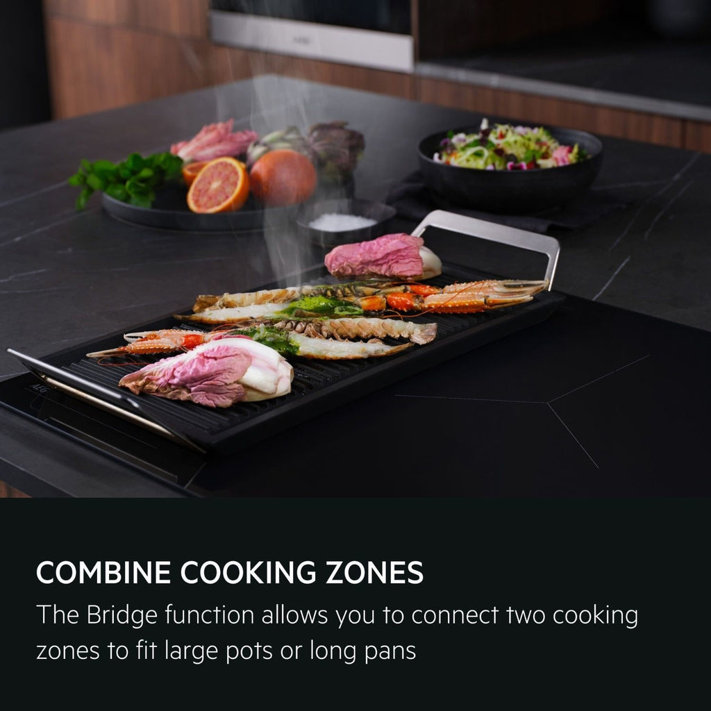 The Bridge function combines two cooking zones together to fit any large or long pan. Sharing the same temperature and time setting, the linked zones are ideal when you're cooking for dinner parties or bigger celebrations.