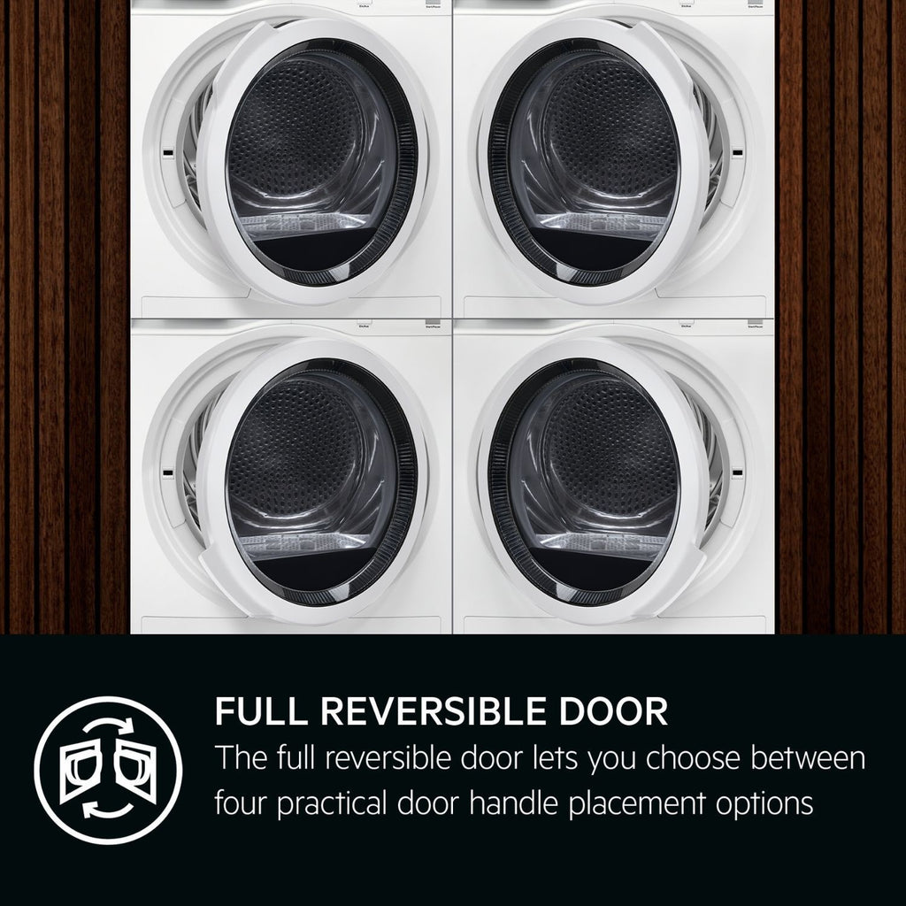Choose from 12 drying programmes, including special settings for wool, sportswear, or a quick refresh, so all your clothes get the right care. The Anticrease function means less ironing for you, and features like Time Dry and Finish In let you dry clothes around your busy day. The EasyClean filter is simple to look after, and the door can be fitted to open either way, so it fits easily in your home.